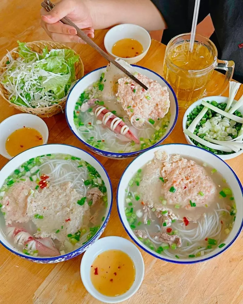 Nhắc đến Tour Phú Quốc 3 ngày 2 đêm, chắc chắn bạn sẽ được trải nghiệm món bún quậy – món ăn mà ai đến Phú Quốc cũng phải thử ít nhất một lần. Bún quậy đặc biệt ở chỗ phần chả cá, chả tôm được quết thủ công ngay tại chỗ, nước dùng trong, thanh ngọt từ xương cá tươi. Khi ăn, du khách tự tay pha nước chấm theo khẩu vị với tắc, muối, đường, bột ngọt và ớt tươi. Cái thú vị là không có hai tô bún quậy nào giống nhau – bởi hương vị của mỗi tô đều là “dấu ấn riêng” của người thưởng thức.