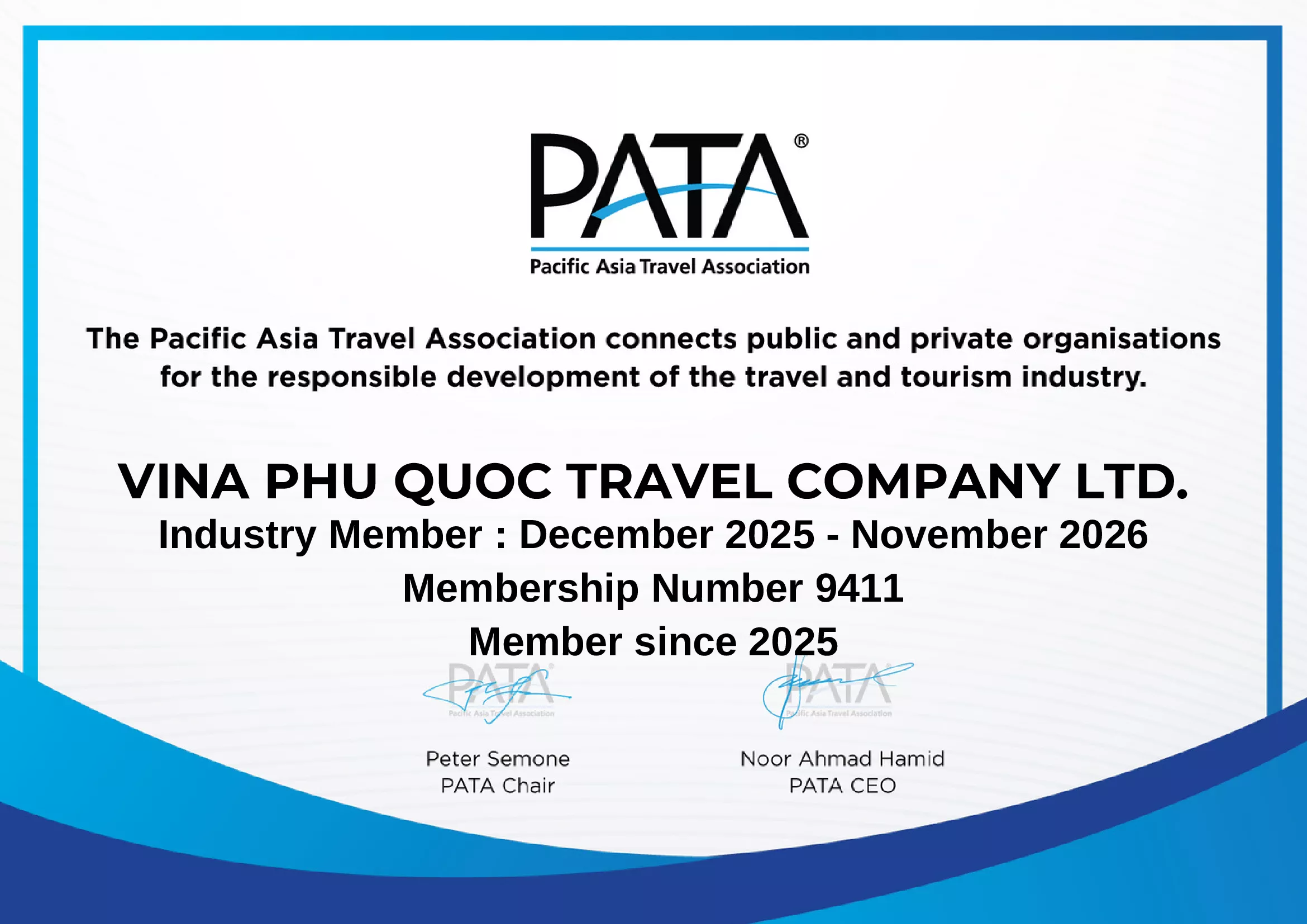 Vina Phu Quoc Travel has officially become a member of the Pacific Asia Travel Association (PATA), marking an important milestone in the company’s development and international integration as a tourism business based in Phu Quoc, Vietnam.